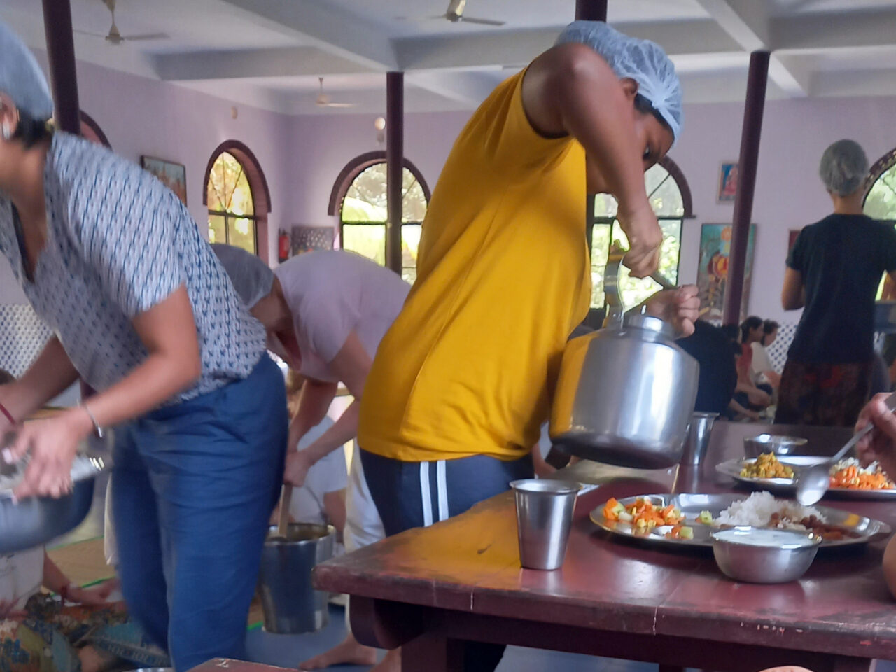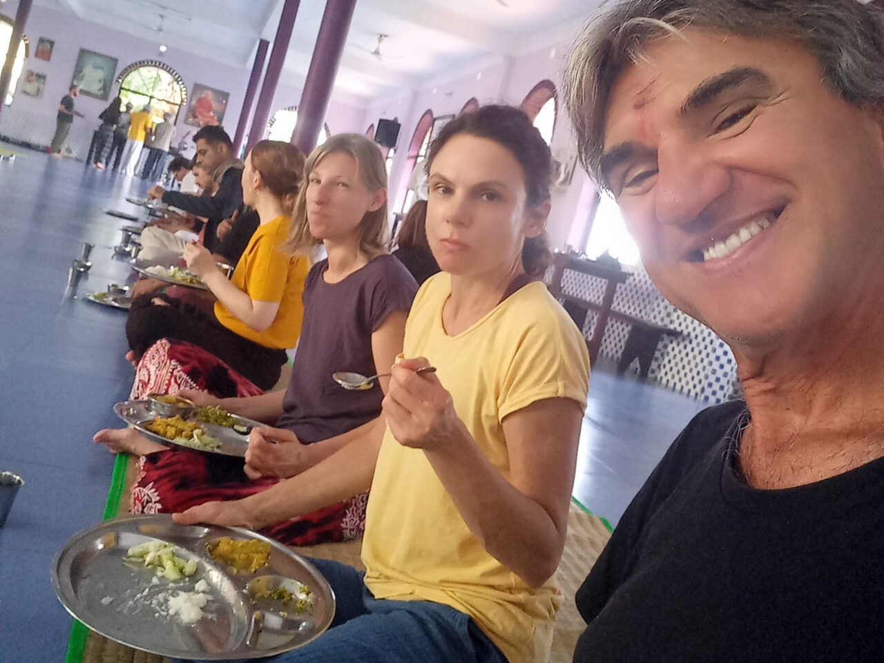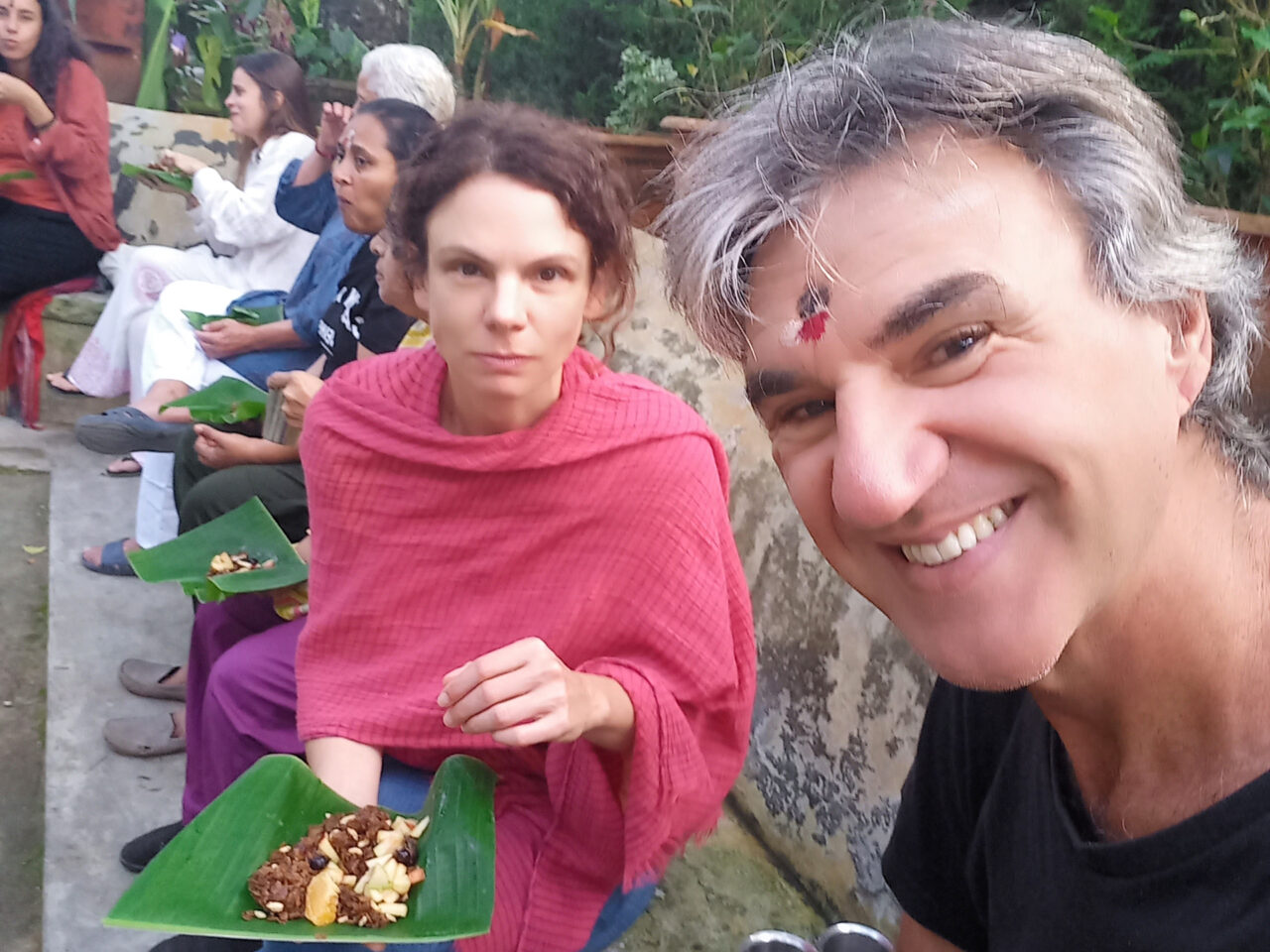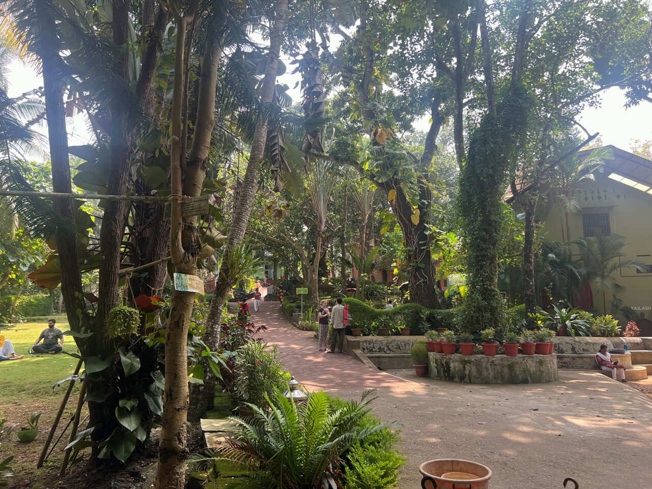 But let’s start from the beginning. We were not driven in search of a Panchakarma full body cleansing. I’m quite happy with the contents of my body and visiting India will cause my bowels to vacate on their own accord sooner or later, so why push the process? We were there to do the big two (Cri for yoga and me for meditation). But the morning and evening chanting (including before and after any activity) was quite refreshing.