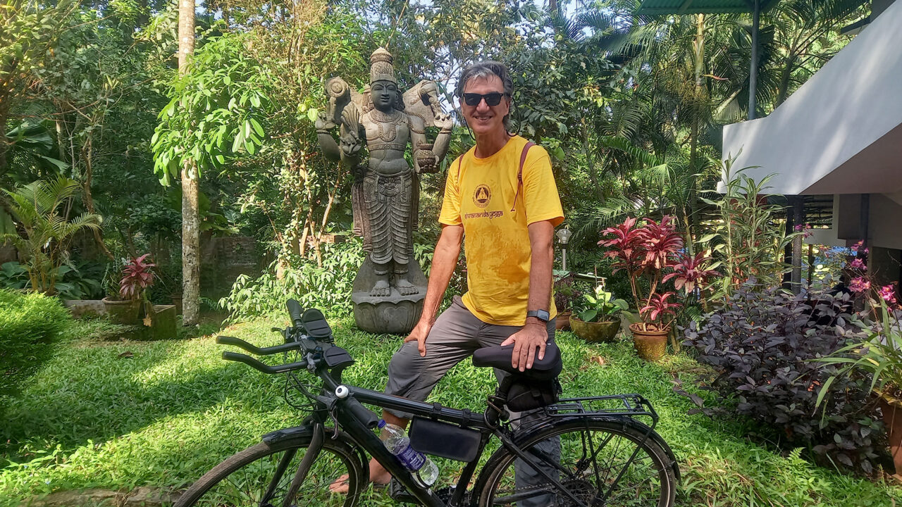 But I did have something else on my agenda. I had previously spotted two bicycles in the ashram that looked like bikekpacking bikes. I’d found the owners and introduced myself. They were staying at the ashram and one had cycled across the Himalayas in the past. I’d arranged to meet up with them (on the outside) after my walk.