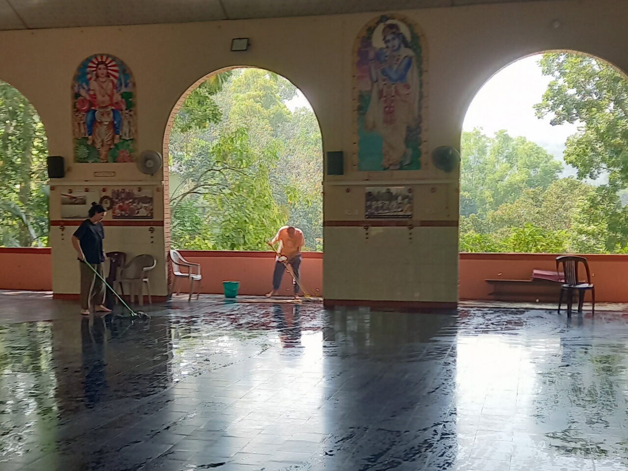 We also had to give back each day, so each attendee was assigned an hour of chores per day. Naturally, given my superior house-husband skills, I was volunteered to do cleaning (sweeping and mopping) of the large hall each day. Oh joy.